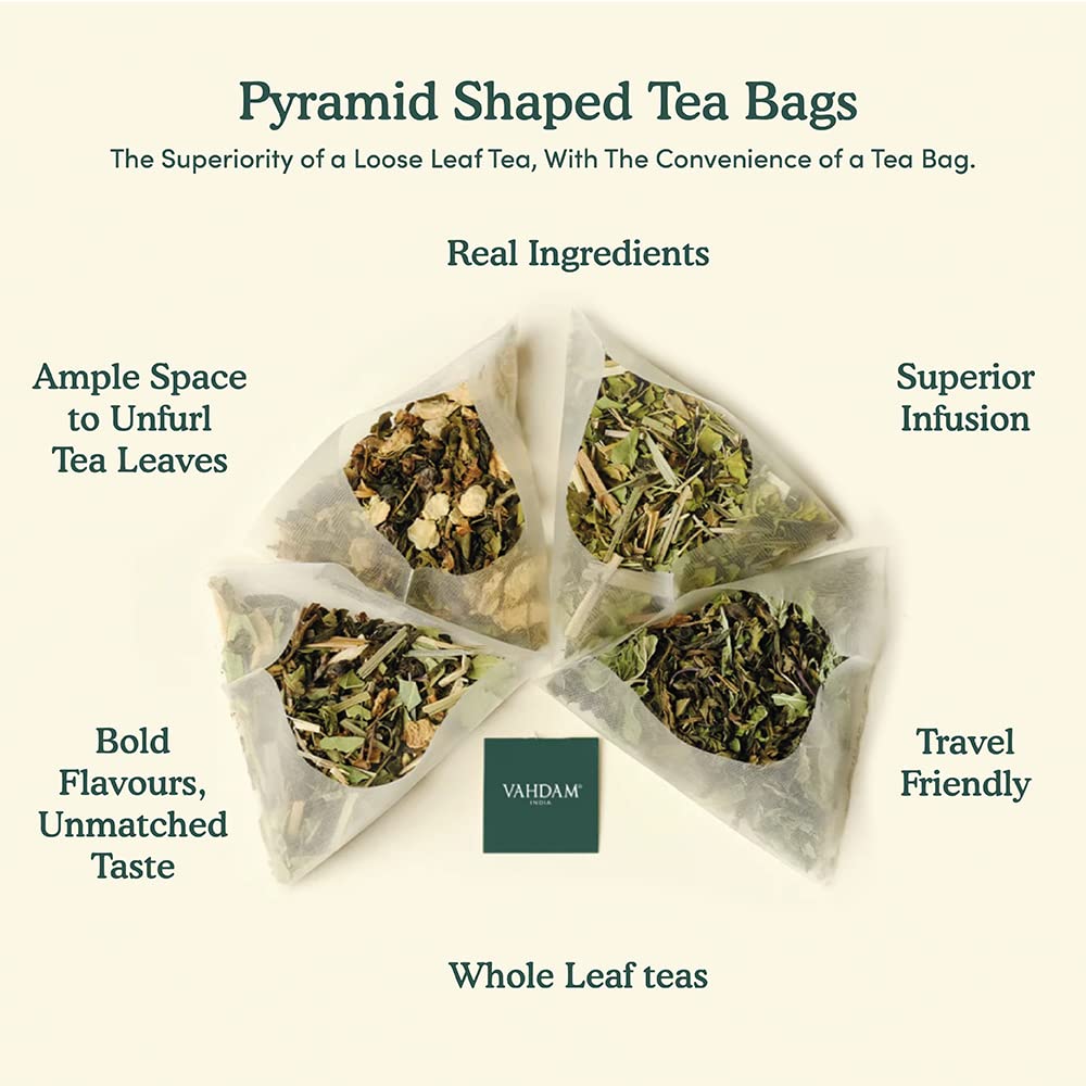 - 100 FULL-LEAF PYRAMID TEA BAGS – Gone Are The Days Of Paper Tea Bags That Tear Up In The Brew. 1 Pouch Of Turmeric Ginger Herbal Tea Contains 100 Sturdy Pyramid-Shaped Tea Bags For A Fresher, Flavorful Brew. Preparation: 1 Tea Bag | 200 Ml Hot Water | 3 – 5 Mins